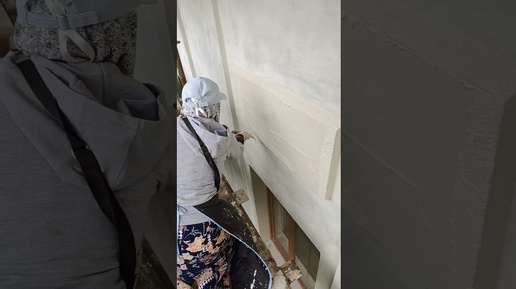 Нанесение декоративной штукатурки Bergauf Камешек металлической тёркой, затирание пластиковой тёркой