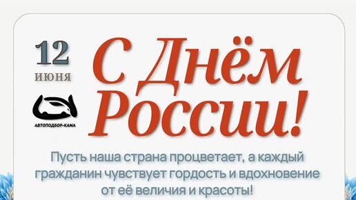 От имени всей Компании "Автоподбор-Кама" поздравляем Вас с Днем России! 🤝🏻 #12июня #ДеньРоссии #автоподбор