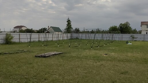 Установил шпалеры на винограднике. 28 штук стоят ровно.