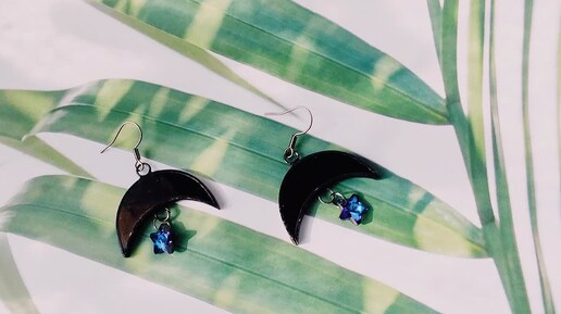 Серьги чёрный Месяц из цветного стекла в технике Тиффани