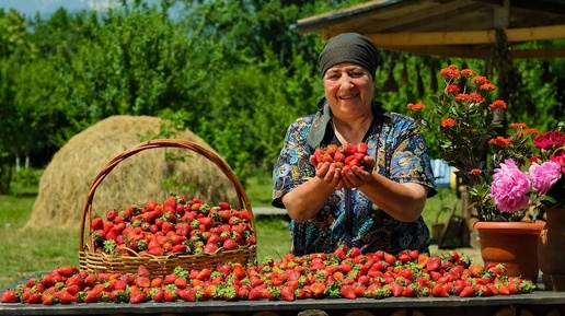 Nature’s Candy – Harvesting Strawberries in the Village Garden 🍓🧺