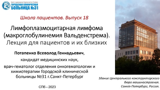 Школа пациентов. Выпуск 18. Лимфоплазмоцитарная лимфома (макроглобулинемия Вальденстрема).