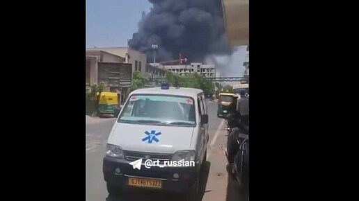 Новые кадры с дымом в жилом районе у аэропорта Ахмедабада в Индии после крушения самолёта