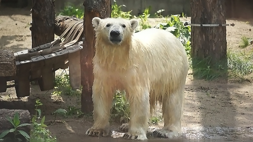 Медвежата Белка и Стрелка раз за разом плавают вместе в бассейне.