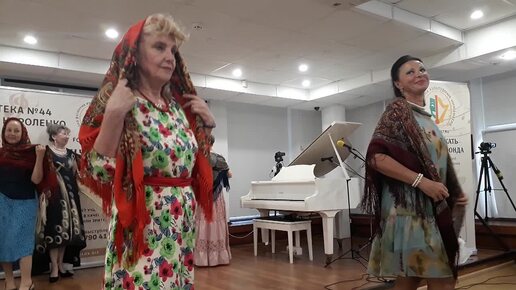 Дефиле моделей на 106-й Музыкально-поэтической гостиной. Школа моделей "Московского долголетия" под руководством Натальи Изотовой. 10.06.25