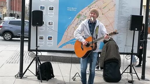 Легендарная песня Журавли - в исполнении уличного музыканта на Арбате, ул Ленинградская в Самаре. В кадре достопримечательности