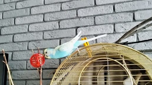 Патрик на клетке развлекается