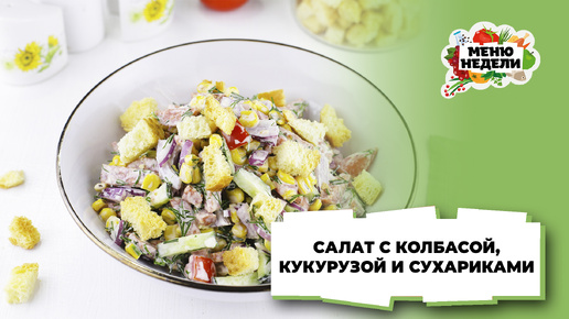 💥Салат с колбасой, кукурузой и сухариками | Меню недели | Кулинарная школа