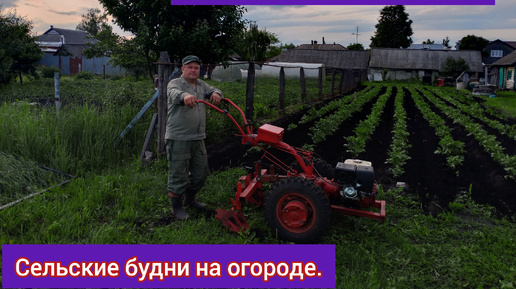 Окучивание картофеля мотоблоком МТЗ. Междурядная обработка. Прополка вручную! Не большой обзор огорода.