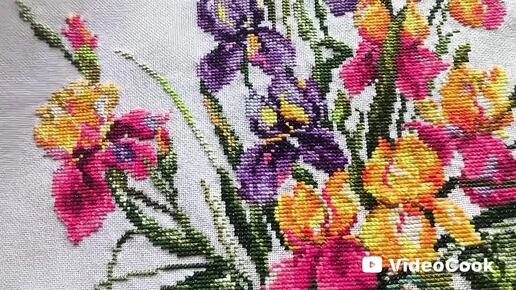 Вышивальные будни.Цветы.Готовая работа от Чудесной иглы"Ирисы".Дюймовочка Мак.