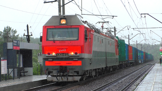 2ЭС6-402 "Синара" с контейнерным грузовым поездом следует через о.п. Огородная
