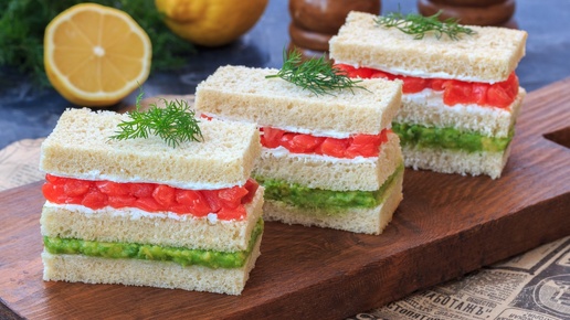 🥪 Идеальные сэндвичи для фуршета. Сочетание авокадо и слабосолёной красной рыбой.