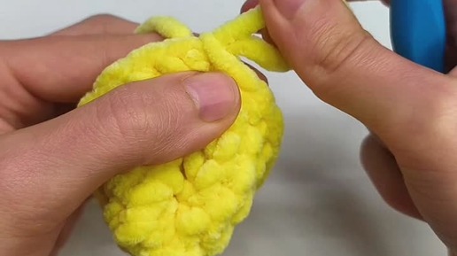 Как связаный полукруг из плюшевой пряжи превратить в пельмень крючком