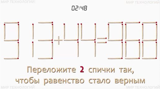 Задача со спичками 533. Переложите 2 спички так, чтобы равенство стало верным (913+44=968).