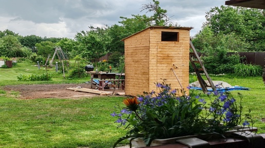 Новый уличный туалет своими руками.Уроки фитнеса от брата.Бегом по огороду