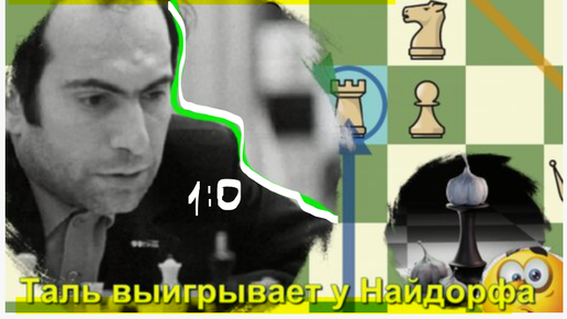 Михаил Нехемьевич Таль (белые) красиво жертвует качество Мигелю Найдорфу и в сумме за 26 ходов выигрывает у соперника в Лейпциге, 1960