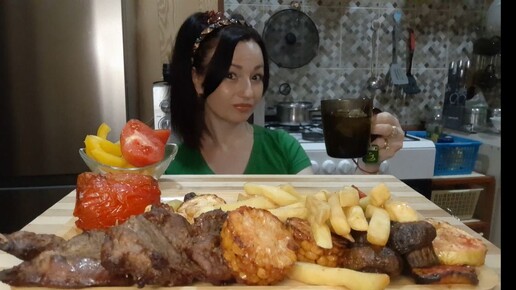 Бон Стейк🥩🍟🫑🍅🌽🍆#мукбанг#неасмр#еда#