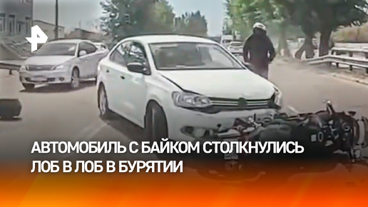 Байкер отлетел на несколько метров от лобового столкновения с авто в Бурятии