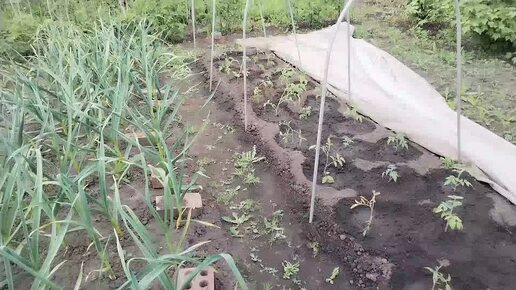 Внучки в гостях. Посадили огурцы, перец, помидоры с внучками.