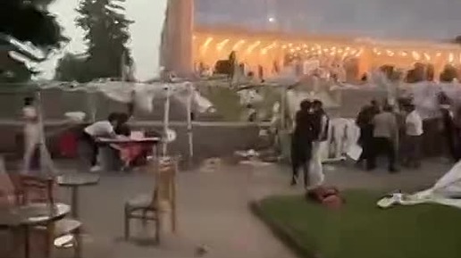 Дождь и сильный ветер прервали фестиваль пива в армянском Гюмри — люди в панике разбегаются