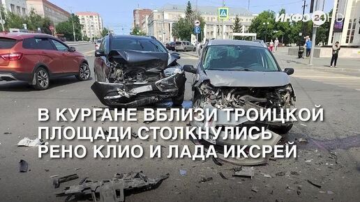 В Кургане вблизи Троицкой площади столкнулись Рено Клио и Лада Иксрей (2025-06-11)