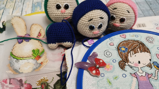 Рукодельные будни июня. День России. #вышивка_крестом #вышивка_на_пластике #вязаныеигрушки