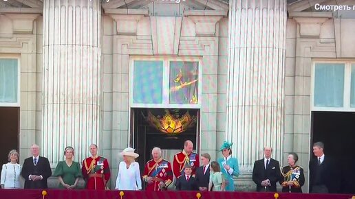Королевская семья на балконе дворца наблюдает за полетом «Красных стрел».