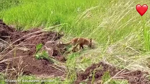 Малыш лисенок вышел на охоту в природном парке «Аслы-куль».