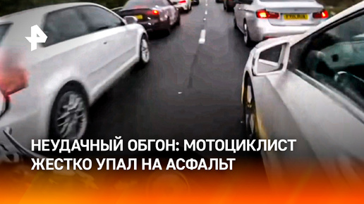 Нетерпеливый байкер жестко приземлился, пытаясь проскочить пробку