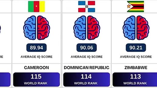 Средний IQ по странам в 2025 год. Get New Knowledge. П.С. Не известна методика определения IQ.