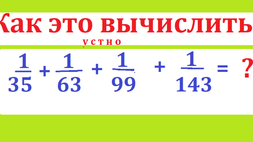 Как это вычислить без калькулятора? 1/35 + 1/63 + 1/99 + 1/143