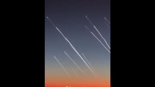 Момент запуска иранских баллистических ракет по Израилю с борта самолёта, пролетающего над ОАЭ