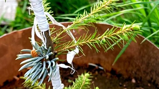 Прививка на ель из семян. Привила ель голубую Хупси.