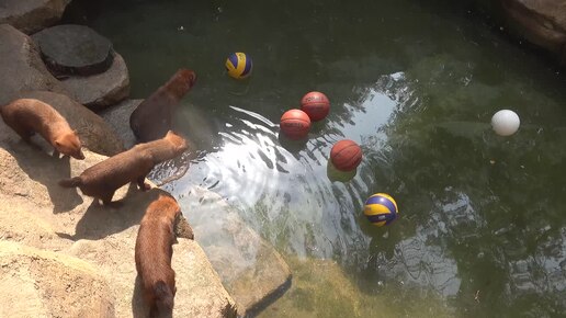 Кустарниковые собаки думают что можно делать с мячами в бассейне. 15.06.2025