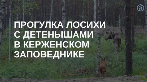 Прогулка лосихи с детенышами в Керженском заповеднике