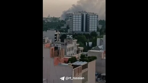 Густой дым поднимается над штаб-квартирой иранского государственного телевидения, куда ударил Израиль