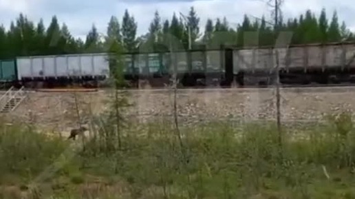 Медвежонок выбежал к движущемуся поезду в Каларском округе