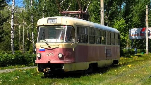 Трамвай Екатеринбурга Tatra T3SU борт. №594 маршрут 14 следует по улице Титова