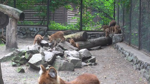 Красные волки и их восемь волчат. 16.06.2025
