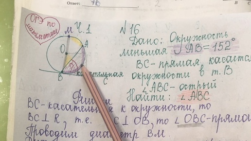 ОГЭ по математике: найти острый угол, зная меньшую дугу окружности (часть 1 номер 16)