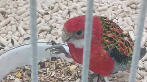 Parrot ROSELLA , has dinner,попугай ,ужин