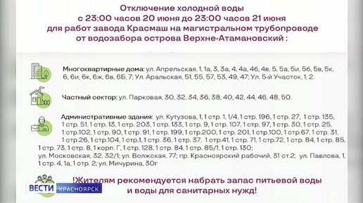 В Красноярске изменили график отключений холодной воды