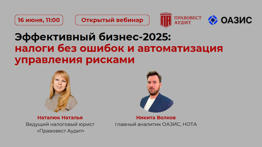 Эффективный бизнес-2025: налоги без ошибок и автоматизация управления рисками (Открытый вебинар)
