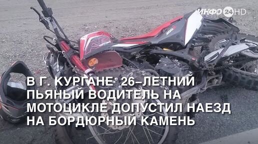 В г. Кургане пьяный мотоциклист не справился с управлением и допустил наезд на бордюрный камень (2025-06-17)