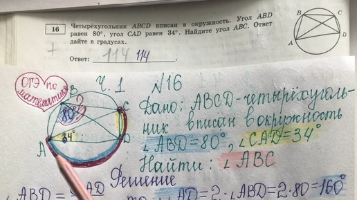 ОГЭ по математике: найти угол ABC (часть 1 номер 16)