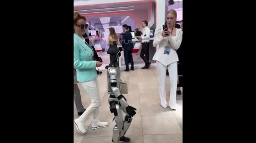 Робот Володька разгуливает с сумочкой среди гостей ПМЭФ