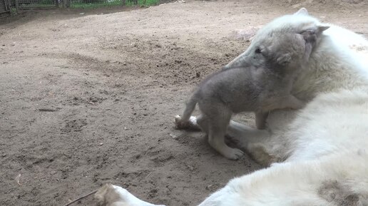 Только волчата могут осмелиться трепать арктического волка за ухо. 16.06.2025