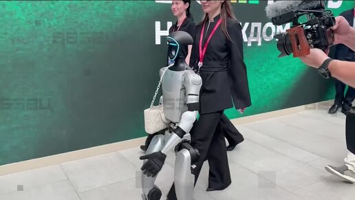 Робот Володя дефилирует с люксовой сумочкой на ПМЭФ