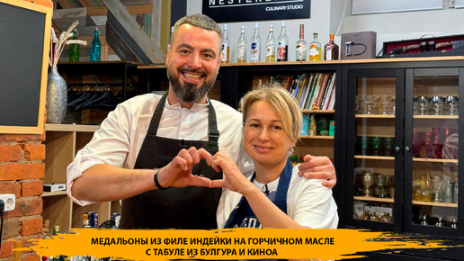 Медальоны из филе индейки приготовленные на нерафинированном горчичном масле и восточный салат Табуле из булгура и киноа