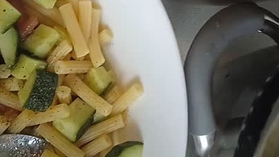 Салат с макаронами и свежими овощами. Вкусная холодная летняя закуска.